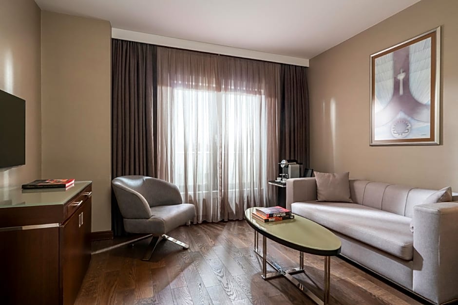 Measuring 39 sqm, the hotel Suite Deluxe guarantees an unforgettable experience thanks to its separate living room, kitchenette, bathtub and terrace with city views among other equipment.